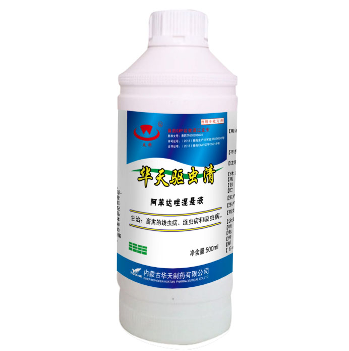 【兽药名称】通用名称:阿苯达唑混悬液 商品名称:华天驱虫清